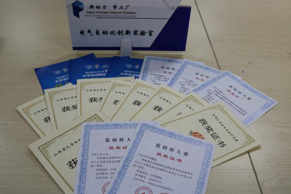 电气创新实验室目前在校人数总共66人,16级29人,17级17人,18级20人,面向全校学生纳新。实验室现主要参加的比赛有:全国大学生电子设计大赛、山西省电子设计大赛、全国大学生数学建模竞赛、美国大学生数学建模竞赛、蓝桥杯、华北五省机器人大赛等。实验室成立以来获得国家级奖项18人,省级奖项38人,图1至图4为电气创新实验室所获奖项部分证书及部分作品。