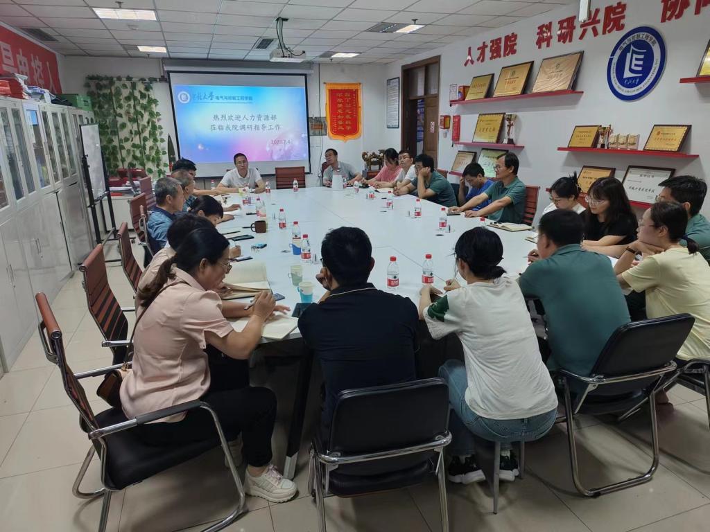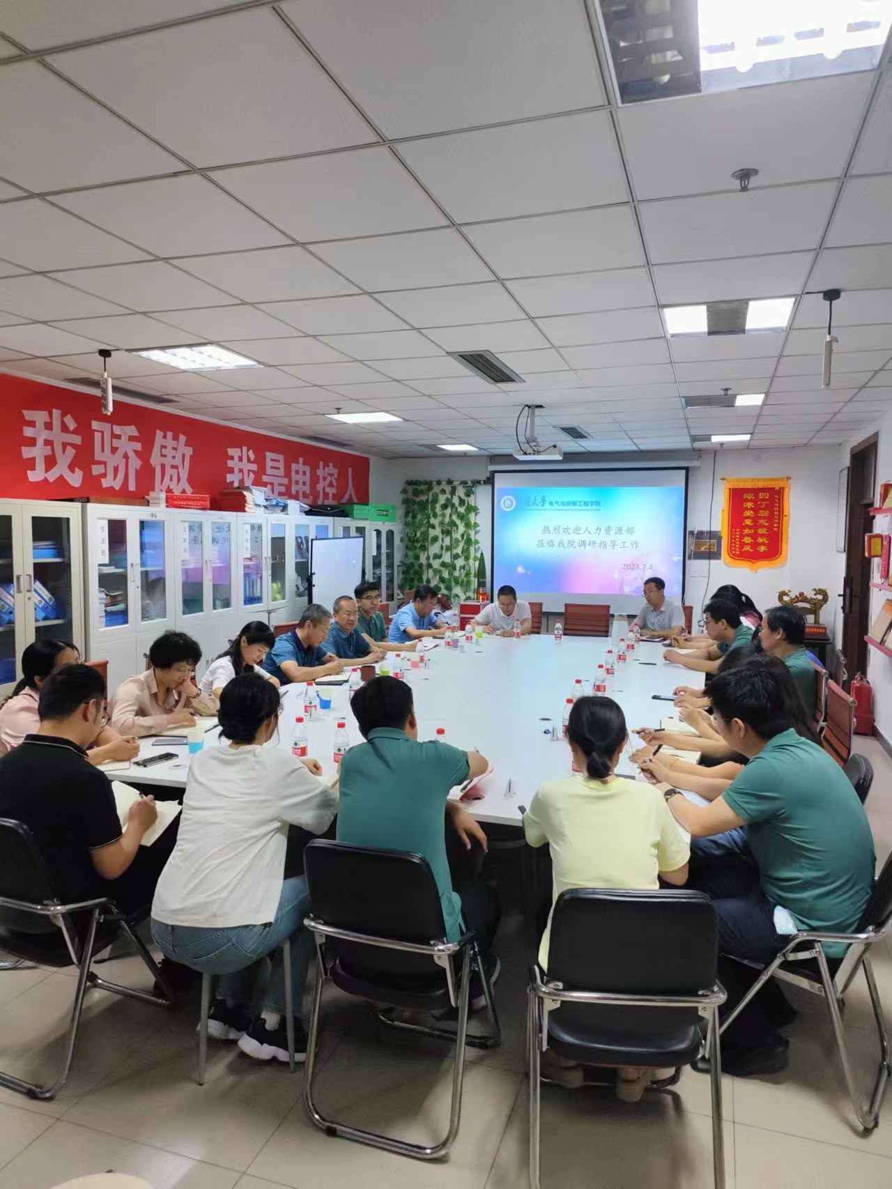 在619会议室召开绩效、职称评审、人才引进座谈会,人力资源部部长王俊元莅临巨乳无码指导工作,全体院领导、科长、系主任和青年教师代表参加了座谈会,会议由院党委书记赵正杰主持。