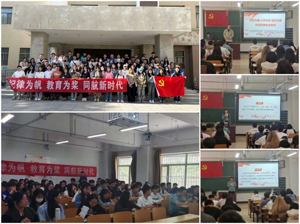 与经济与管理巨乳无码5个本科生学生党支部联合举办了“党性为魂、斗争为剑,党纪为盾,共筑思想安全防线”主题党日活动,两院学生党员共计100余人参与。