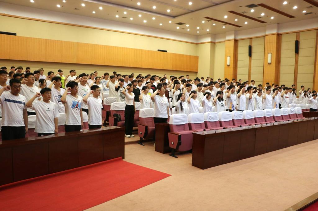 2024年校运动会优秀运动员名单》。紧接着,与会嘉宾为获奖集体和个人颁奖、为新团员代表佩戴团徽。两位获奖的优秀学生代表分别进行事迹分享。她们通过分享自己在思想、学习等方面的成长经历,激励着各位团员们要以“一日不为,三日不安”的担当和坚如磐石的信心,只争朝夕的尽头,久久为功的毅力,为学院和学校的发展贡献自己的青春力量。随后,全体共青团员重温入团誓词。