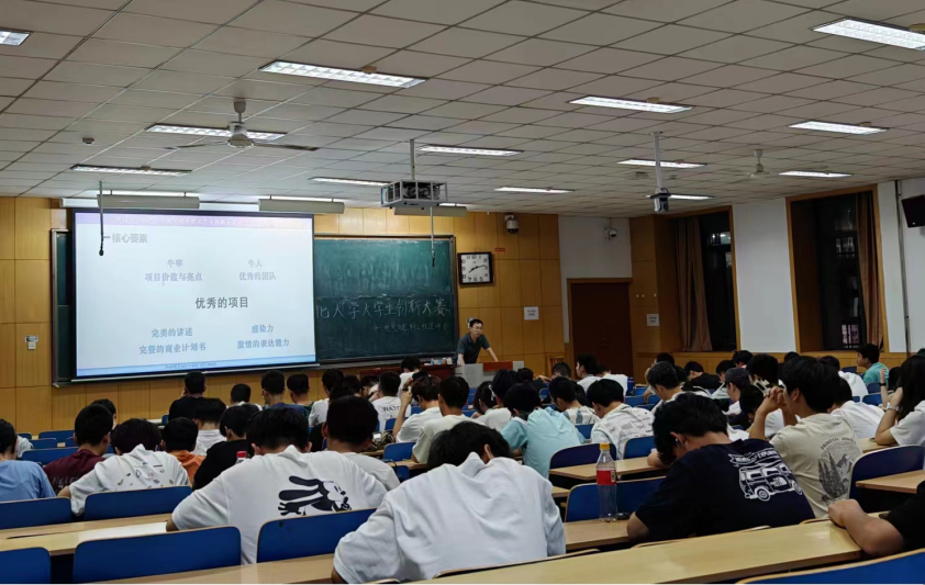 在宣讲过程中,陈老师也指出了一些需要注意的问题。他强调,项目在前期调研和需求分析方面要做足功课,确保项目方向明确、实施顺利。同时,他还指出,一些项目在技术创新和商业模式创新方面还有待加强,需要同学们在后续的学习和实践中不断探索和提升。为了让同学们更好地理解项目运作的实际过程,他还特别介绍了“路演”这一重要概念。