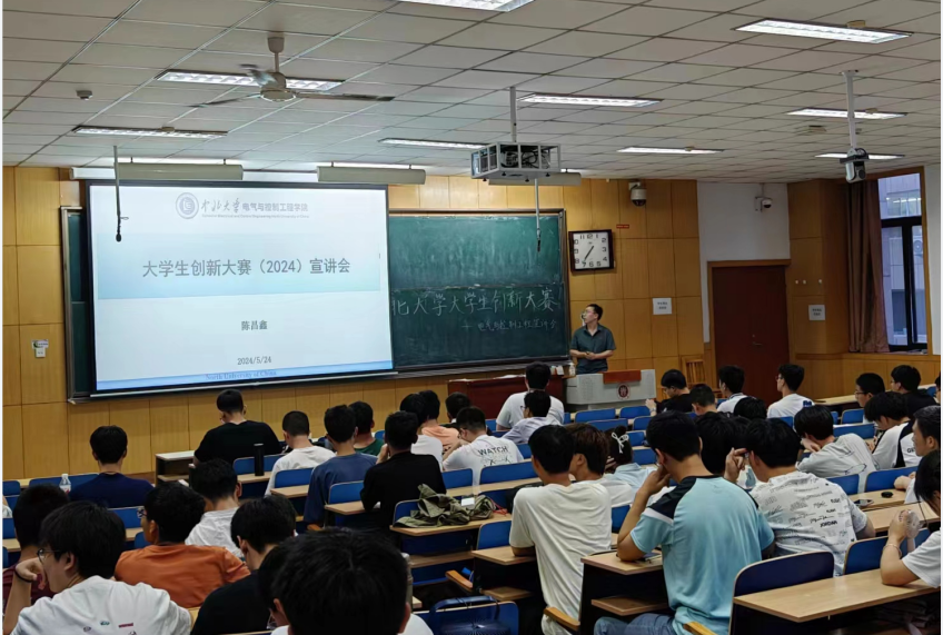 于2024年5月24日19:30在11309H教室举办大学生创新大赛(2024)宣讲会。会议邀请指导学科竞赛领域经验丰富的陈昌鑫副教授,为大家带来一场精彩的赛前指导讲座,21、22、23级学习委员、科技委员及各班有兴趣的同学们出席会议,共同参与,共同学习、共同进步。