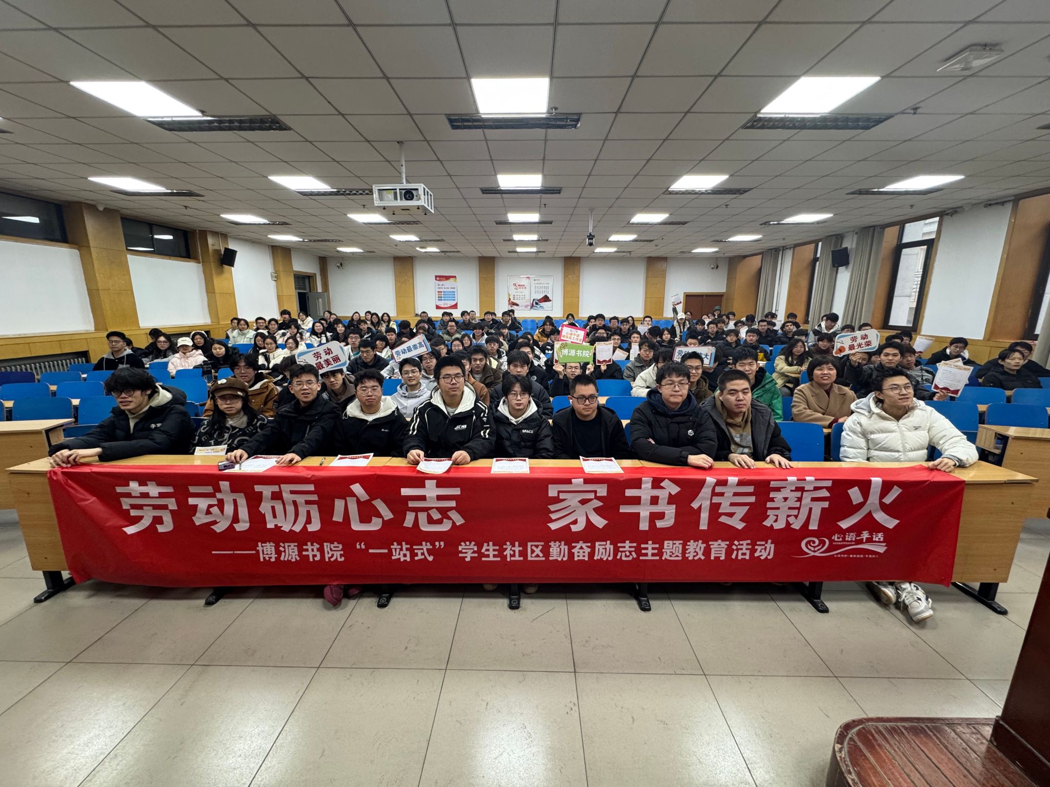 以博源书院“一站式”学生社区为平台,举办了面向学生的“劳动砺心志 家书传薪火”主题教育活动,为新年伊始注入了奋进向上的底色。通过沉浸式、互动性的教育活动,同学们从红色家书中汲取精神养分,牢固树立热爱劳动、自立自强、诚实守信、感恩奋进的价值观念。