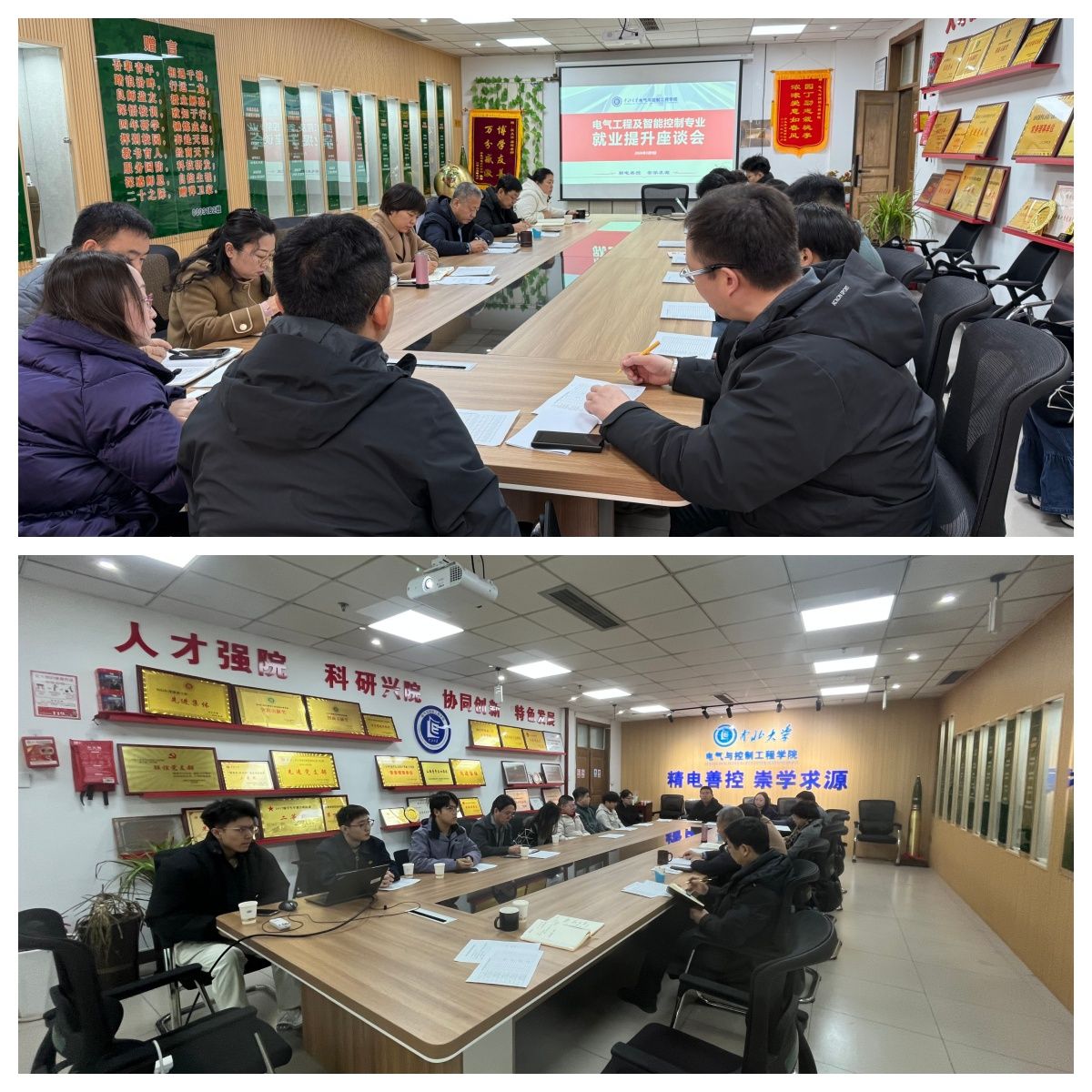 2026届毕业生代表分别从升学、电网考试、就业等方面进行了具体介绍。参会的老师们与同学们就具体情况展开了深入交流。专业课程的教学、考研学校的选择、复试与调剂的准备、就业单位的选择,都是师生们交流的重要内容,也是影响毕业生就业质量提升的重要因素。