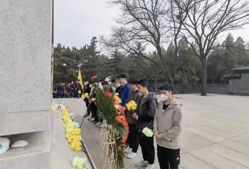 20150501班和20150502班的同学们怀着无比崇敬的心情,来到在太原市牛驼寨革命烈士陵园(太原解放纪念馆)进行清明祭英烈活动。聚集在革命烈士墓前,举行庄重的祭扫革命烈士墓仪式,深切缅怀革命烈士的丰功伟绩,继承先烈遗志、发扬革命传统。活动开始,同学们站在徐向前元帅的雕像前,鞠躬致礼,以示敬意。接下来,同学们怀着对烈士的崇敬之情,面对纪念碑献花、鞠躬。同学们更加认识到作为新时代青年身上承担的责任,我们必将传承这股红色精神,砥砺前行。