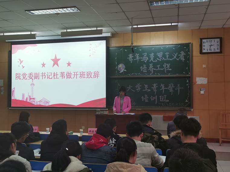 紧接着,高瑞珍老师宣读了本次大学生骨干培训班的课程安排及培训要求,表达了对同学们的期望,希望通过培训班的学习,让各位学员成长为一批坚定信念跟党走,高举习近平新时代中国特色社会主义思想伟大旗帜的青年马克思主义者。